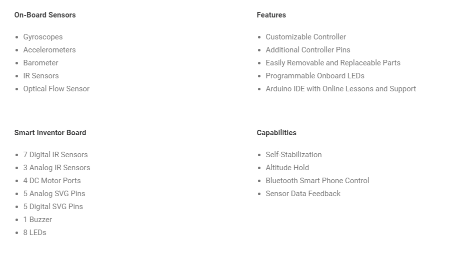 Students need to assemble it first, where they have more options to customize their preferences and tastes. Subsequently, the drone can be AI (Artificial Intelligence) programmed with all the elements of movement and navigation using the programming language C. You can program them to accompany you, follow you, flying to a certain height at a given time, to move through the desired corridors, engage in laser battles, use it to play games, go through a maze and more.