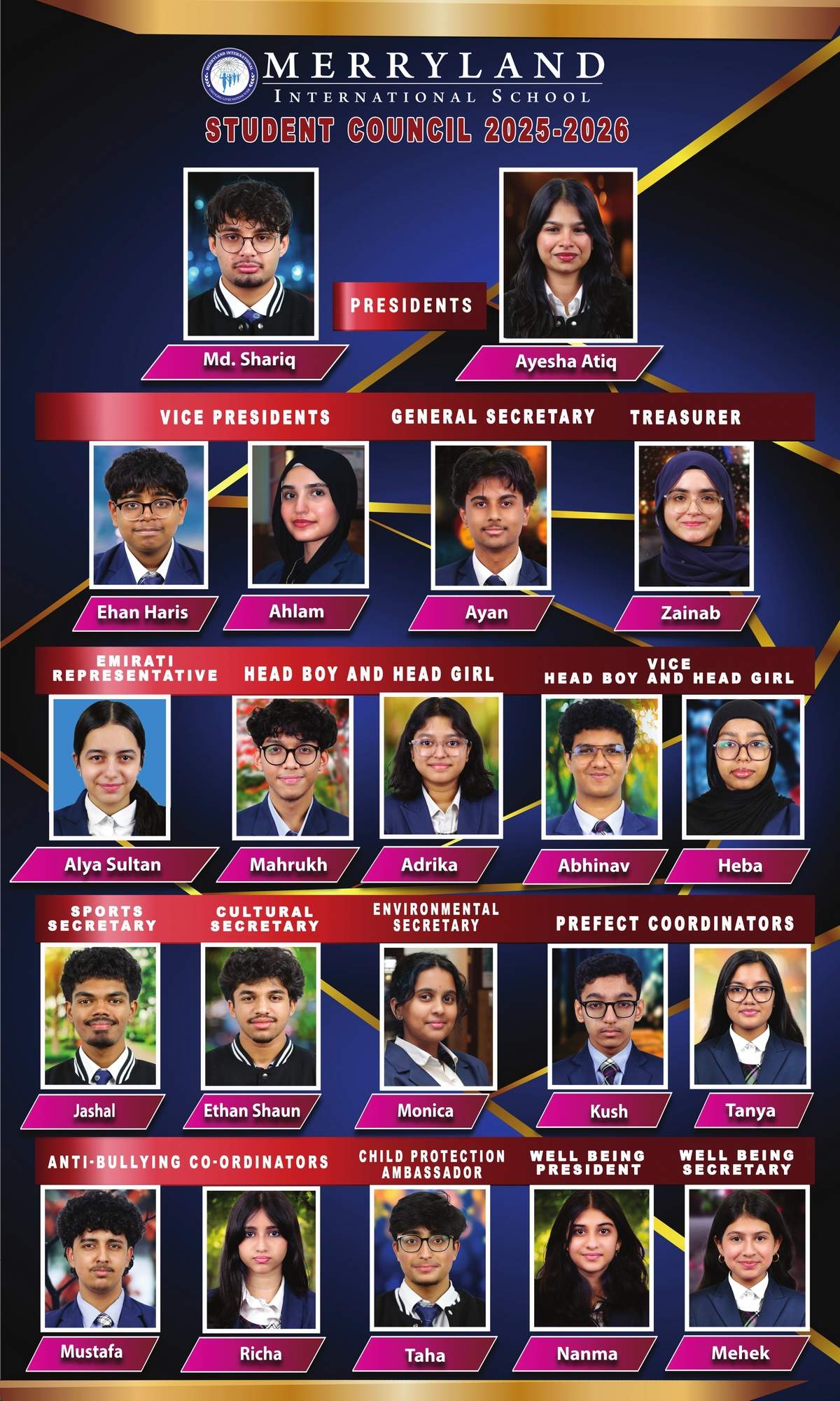 Established in 2000, the Merryland Student Council has long served as an incubator for nurturing exceptional leaders within the school. The primary aim of the Council is to encourage student involvement in a variety of pursuits beyond their academic commitments. Drawing inspiration from our dear founder, Mrs. Susheela George, the Council has adopted “Disciplined, Devoted & Dedicated” as its official motto, symbolizing the core values that guide its initiatives.