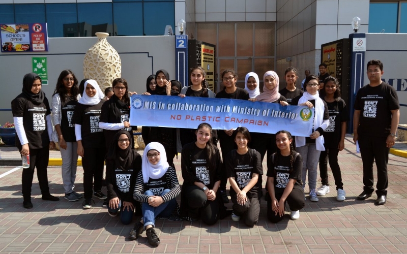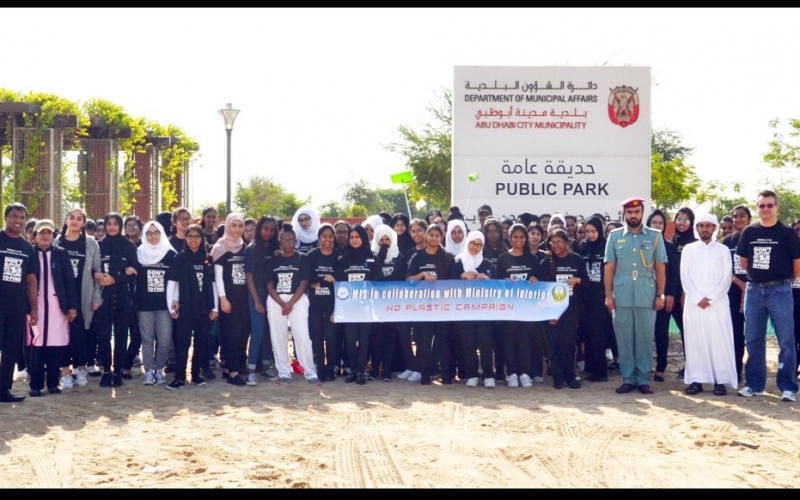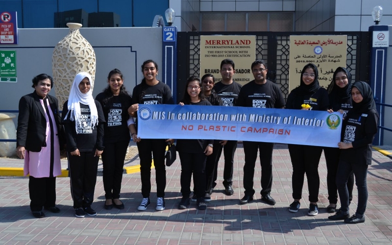 In a bid to spread awareness among the public on the need of doing away with the environmentally-unfriendly’ plastic and to encourage people to keep the surroundings waste-free and clean, Merryland students launched a ‘SAY-NO-TO-PLASTIC’ initiative and embarked on the mission with missionary zeal. Having found the previous ventures a runaway success with the whole-hearted support from the authorities especially from Captain Mohamed Alsaadi of community police Abu Dhabi and Ahmed Al Qubaisi, Event department coordinator, Zayed Municipality centre, Mussafah. Students this time took on the task of cleaning G4 Park, Mussafah, Abu Dhabi.