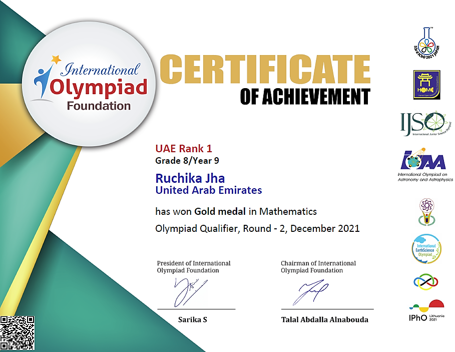 Ruchika Jha of Merryland International School put in a stunning performance in the recently held Math Olympiad. Ruchika Jha was ranked first in the UAE, winning a gold medal to her credit. She has etched an indelible mark in KENKEN Math competitions as well and brought laurels to the schools several times in the past. Congratulations to the outstanding performer.