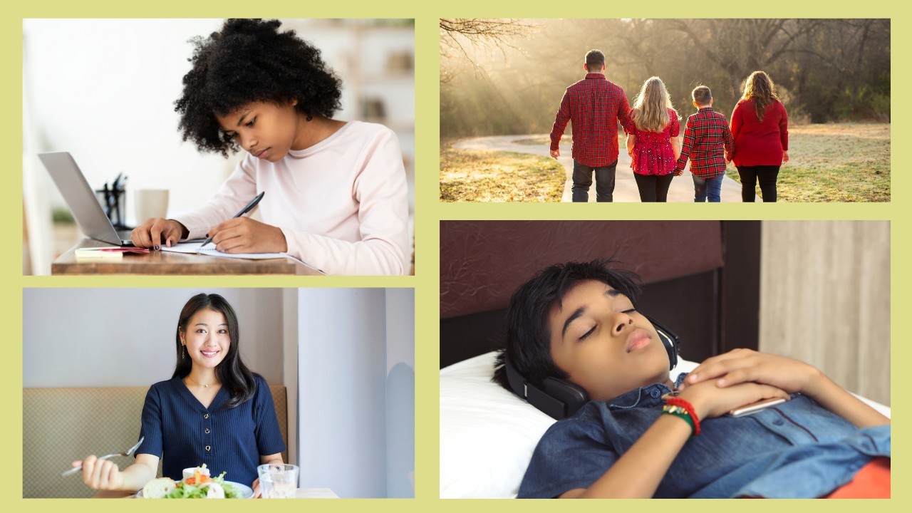 Prioritize rest. Teens need 8–10 hours of sleep. A regular bedtime routine and limits on late-night screen use help their bodies and minds recharge.